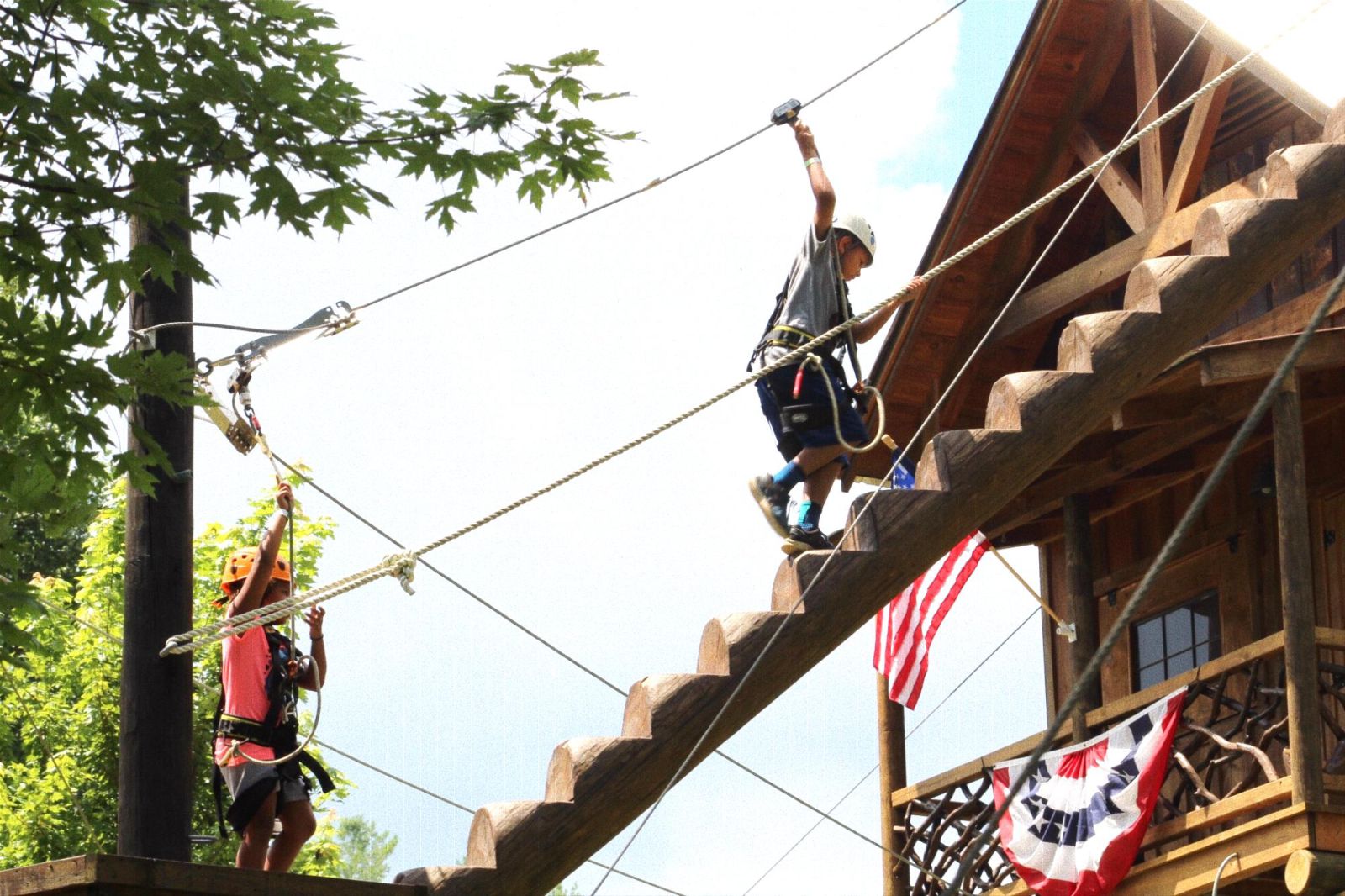 Our extreme course has 13 elements that go across the Chattahoochee River and a zipline. The elements include: Flea Hop, Giant’s Necklace, Swinging Stairs, Pirate’s Net climb, Balance Beam, Indiana Jones Bridge, Bouncy Buoys, Zig Zag, Stump Step, Horizontal Playpen, Swinging Ladders, Tension Traverse, Ring Swing. Several elements are suspended over the Chattahoochee River. You will end the course on the zipline.