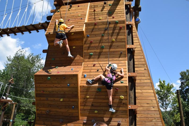 We have a 24' outdoor climbing wall with four lanes for different levels of difficulty. This is a great option for those who want to test out their rock-climbing skills or want an adventure that keeps you a little closer to the ground. We welcome children and adults for this adventure! It is self-guided. We will have our highly-trained guides there but you get to experience the adventure on your own.